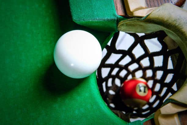 The term “cue ball” refers to the white ball used to strike and pocket other balls.