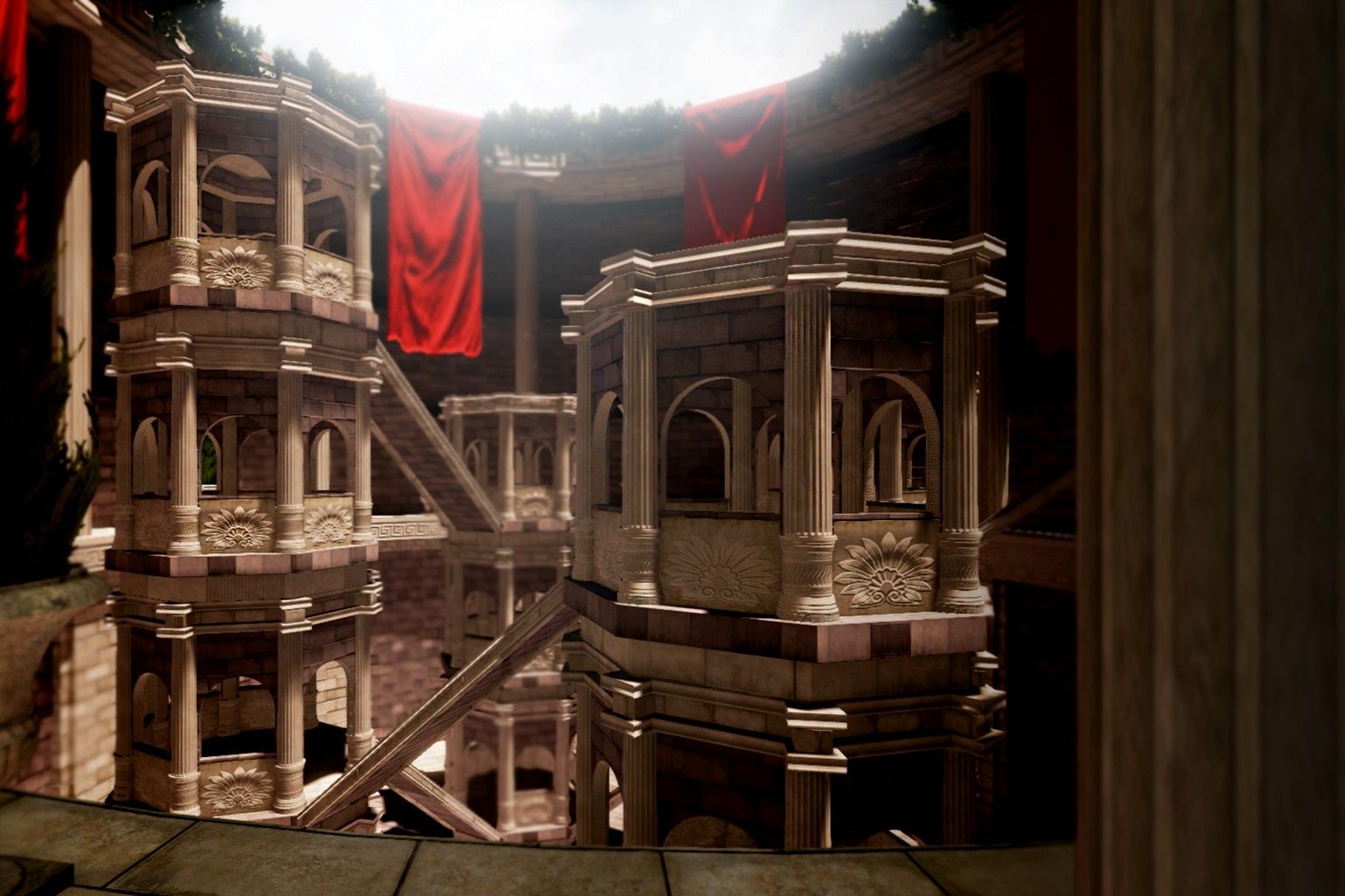 - The game’s environments are inspired by classical architecture, featuring grand columns, intricate mosaics, and vast open spaces.