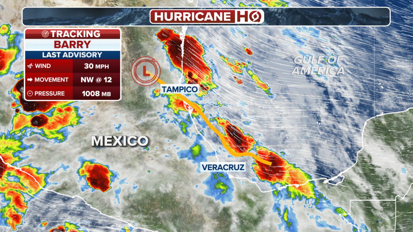 - Landfall Location: Barry made landfall in Louisiana, near Intracoastal City.