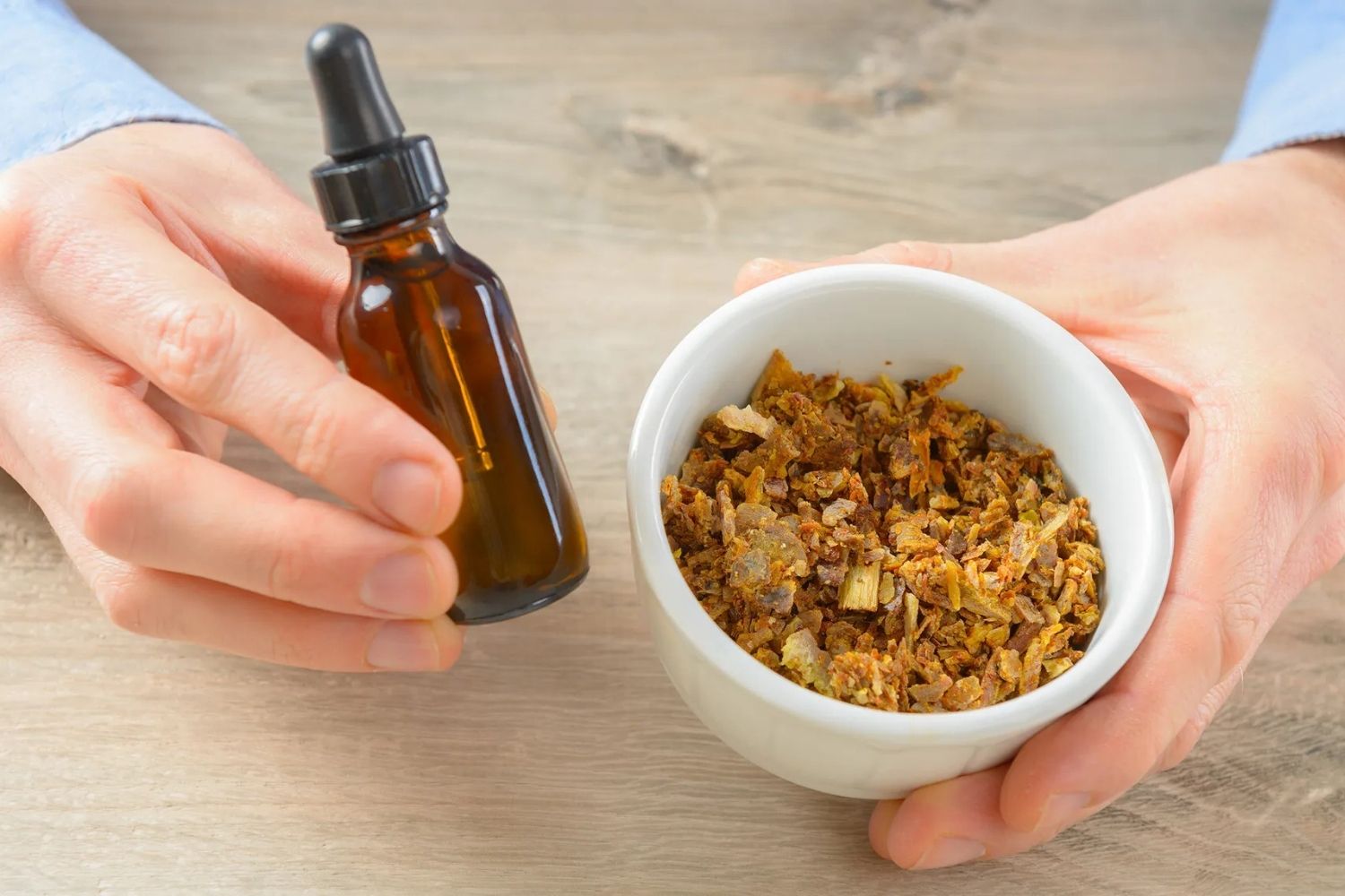 Propolis tincture. This liquid form is often used for its antibacterial and antiviral properties.