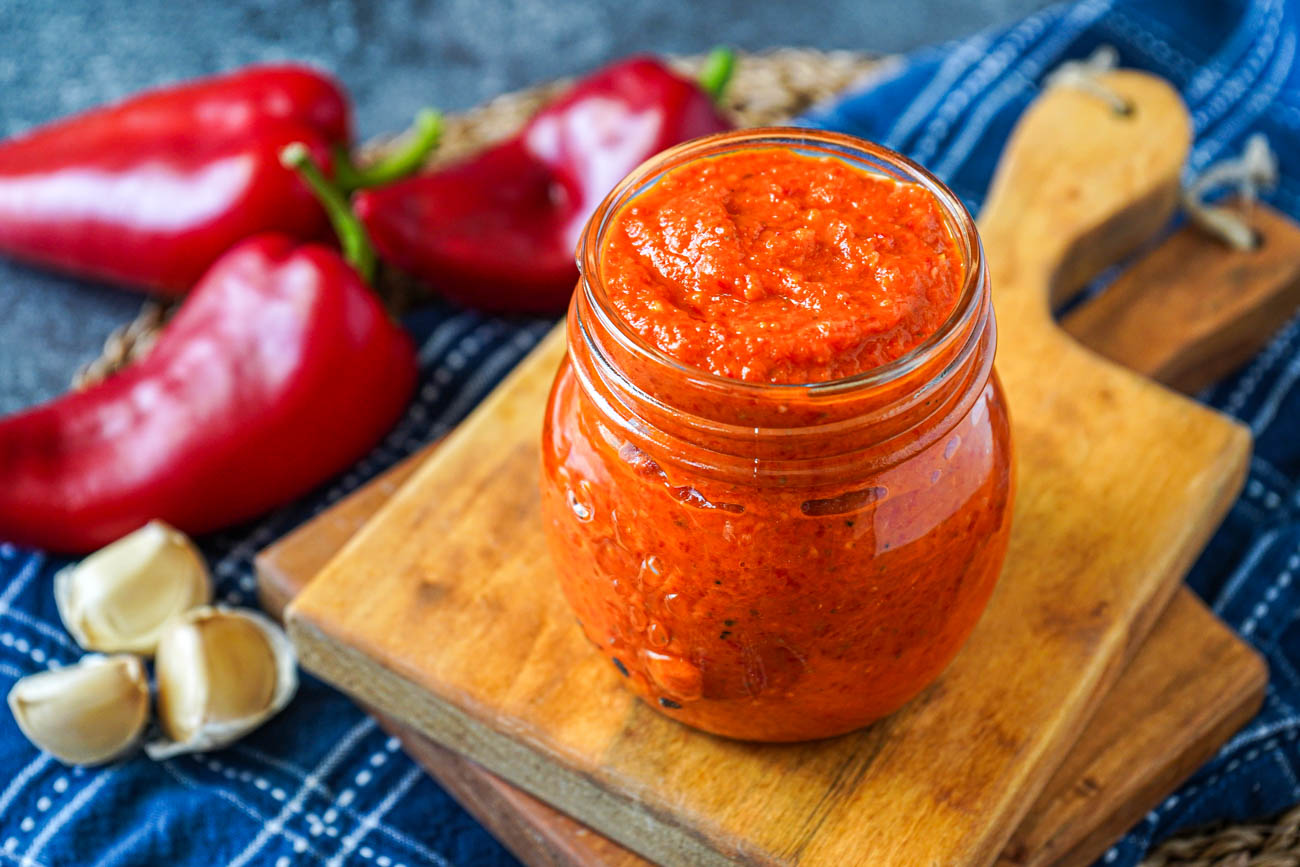 Ajvar is traditionally made from roasted red bell peppers, giving it a distinct smoky taste.