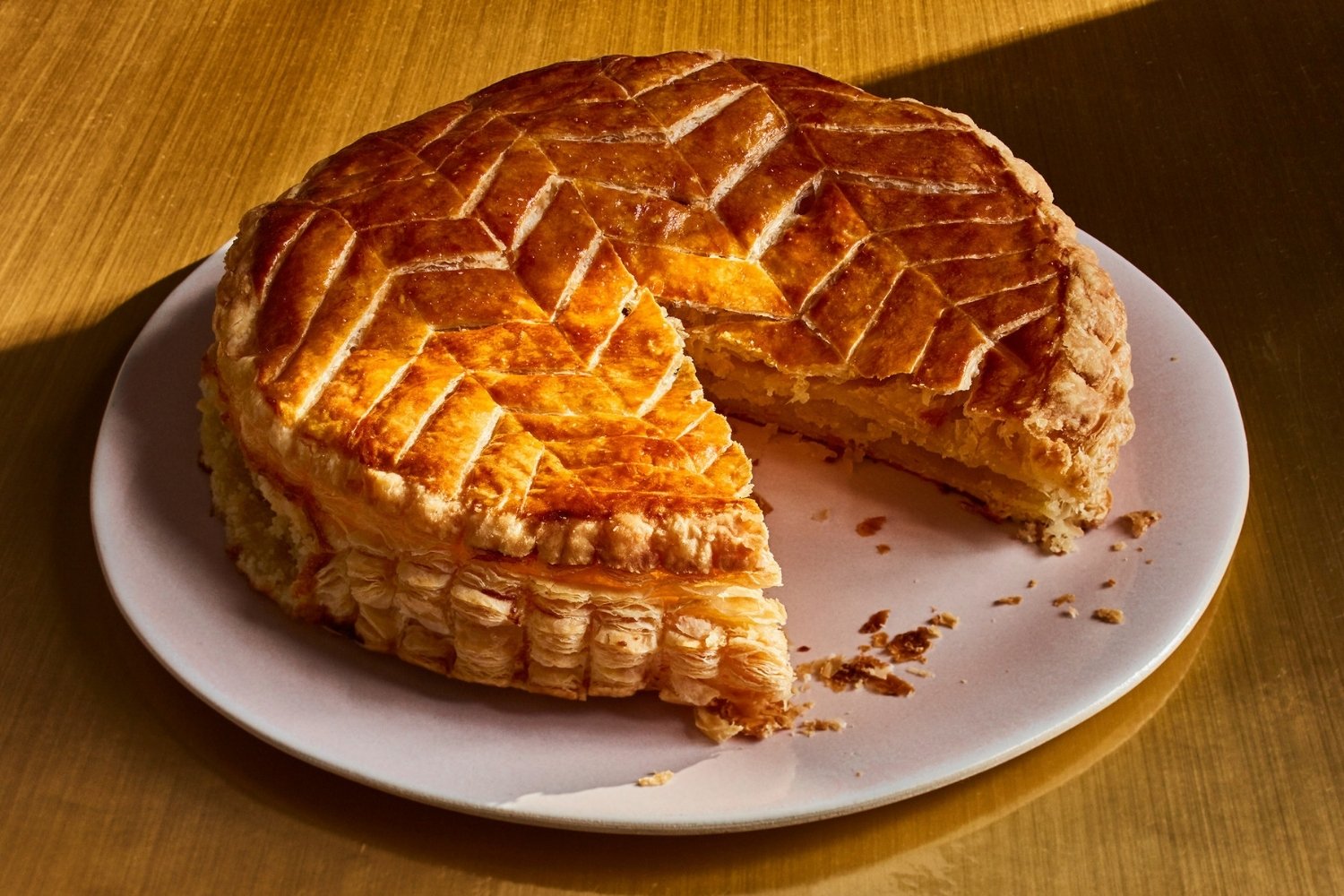 The "Galette des Rois" is traditionally eaten on January 6th to celebrate the Epiphany. A small trinket, known as a "fève," is hidden inside, and the person who finds it is crowned king or queen for the day.