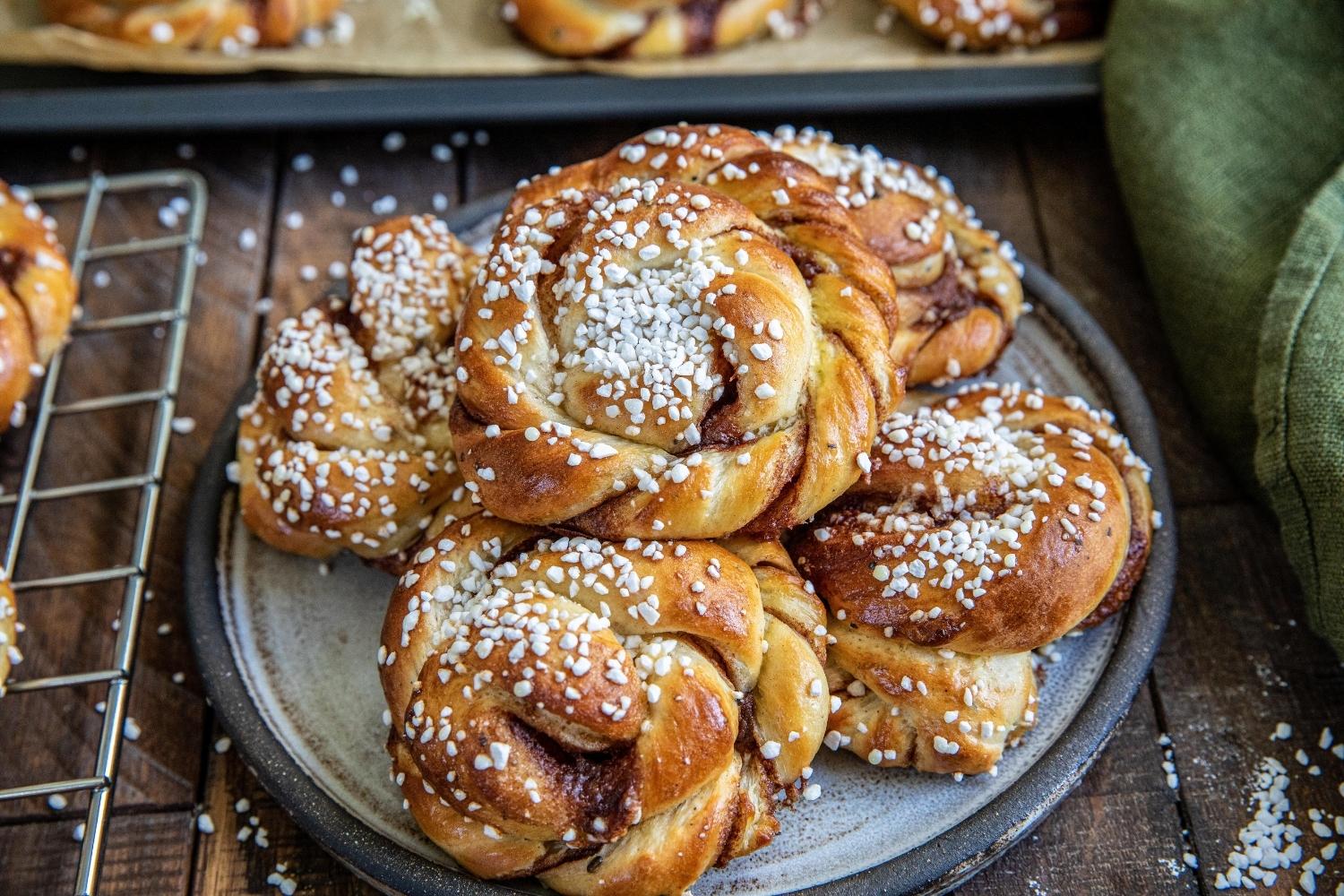 Twisting and Knotting: The rolled dough is often twisted or knotted before baking, creating the traditional kanelbullar shape.
