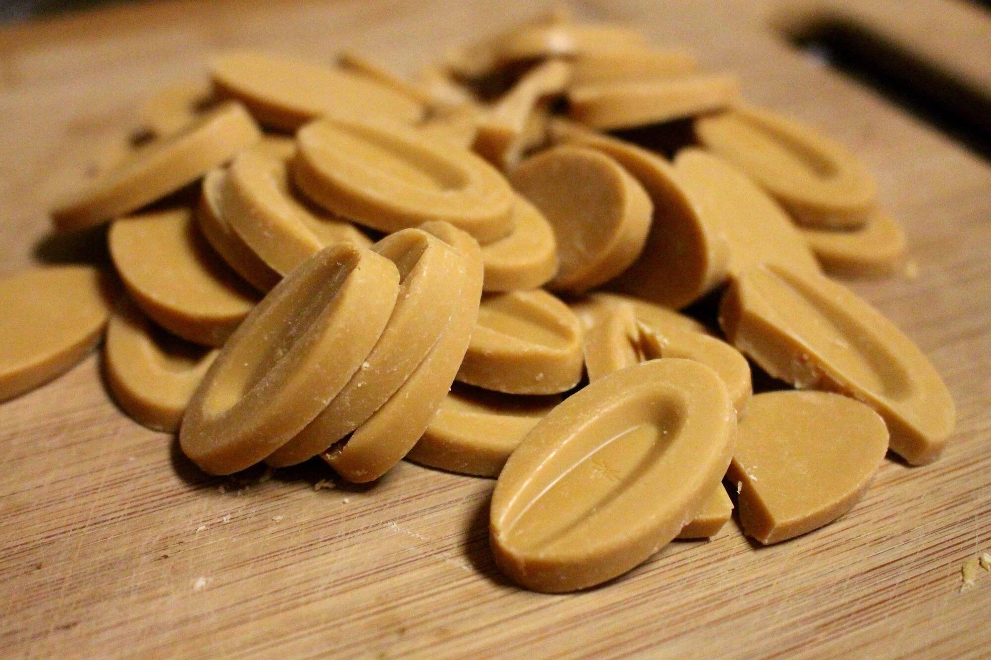 - The prolonged heating process caramelizes the sugar in the white chocolate, giving Dulcey its signature golden color and toasty flavor.