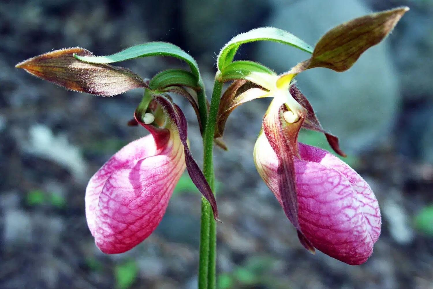- The Pink Lady's Slipper (Cypripedium acaule) is easily recognizable by its bright pink flowers.