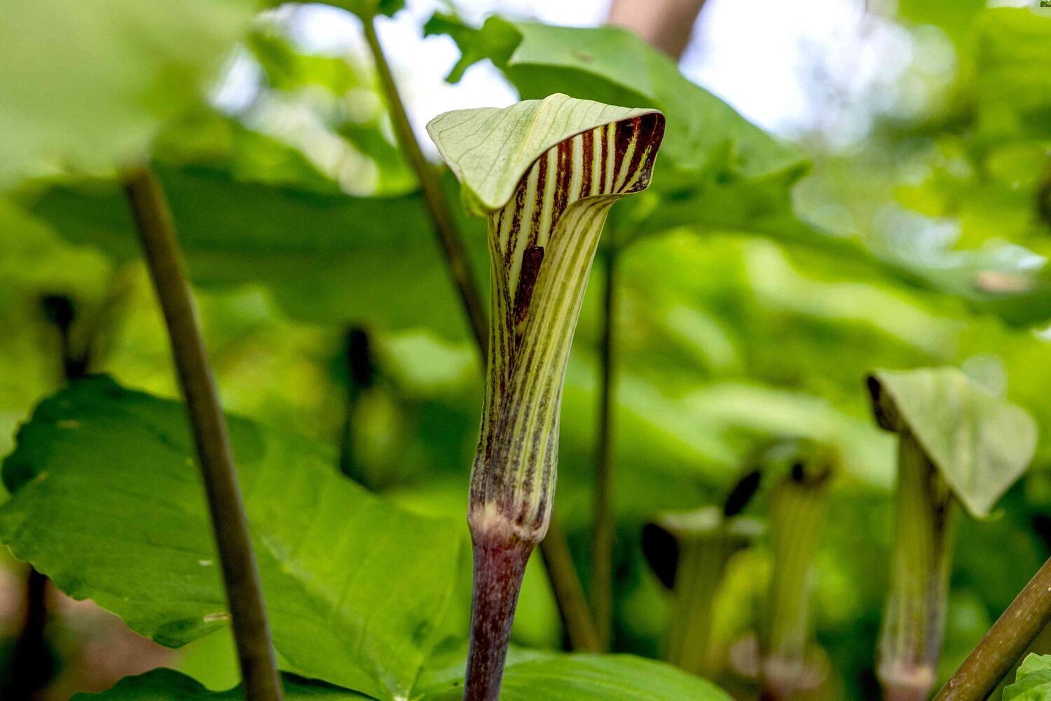 Jack-in-the-pulpit often grows in colonies, which can create a striking visual effect in the forest understory.