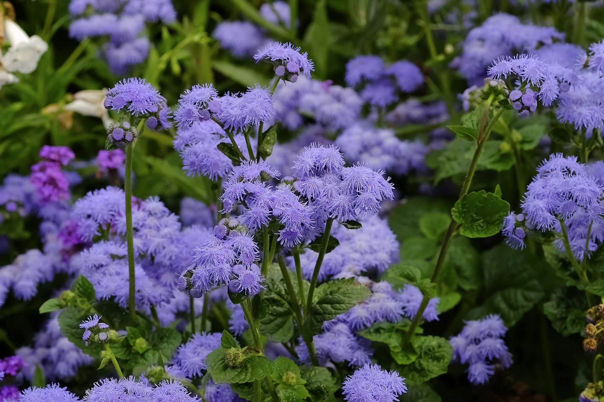 Ageratum is often used as a bedding plant. Its compact size and colorful blooms make it perfect for garden borders and flower beds.