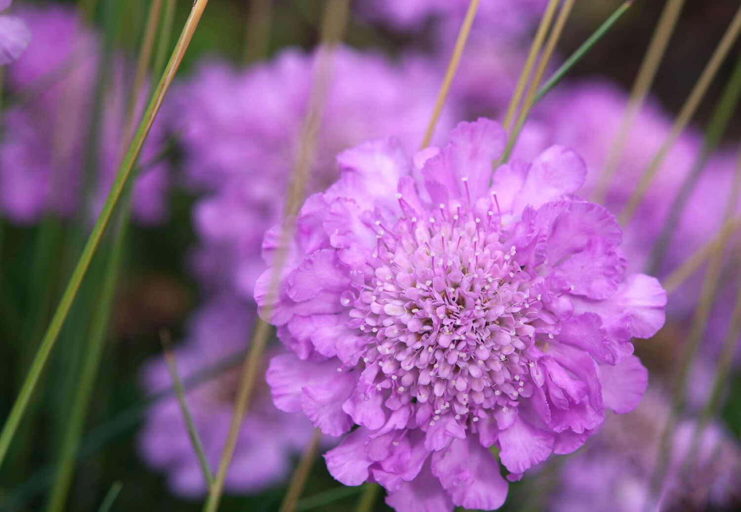 - Pincushion flowers can be planted alongside ornamental grasses for a naturalistic look.