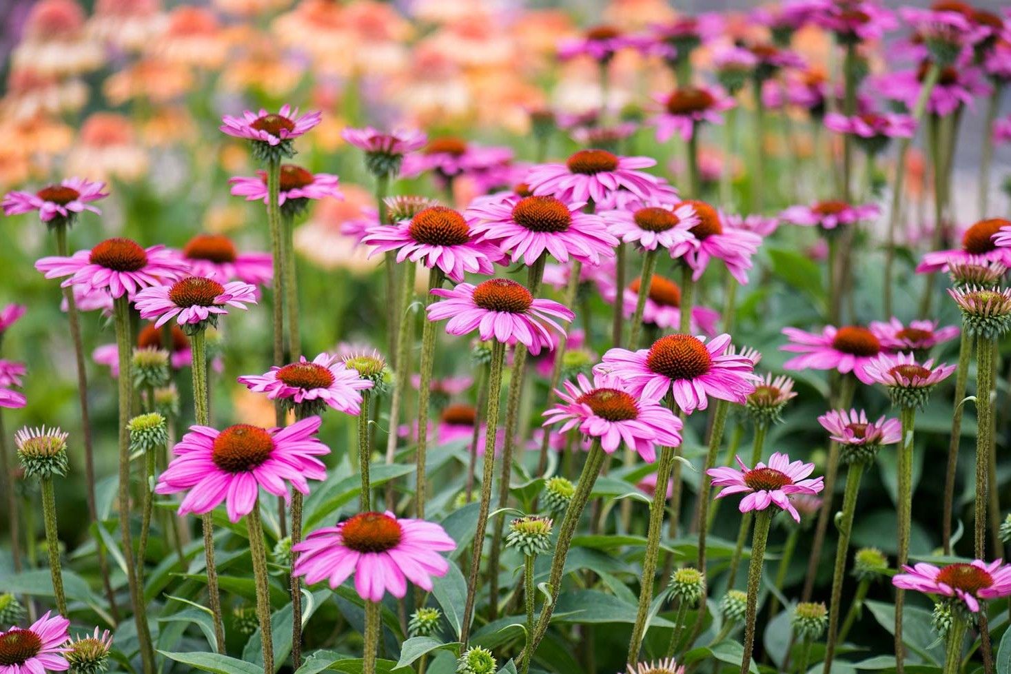 Echinacea flowers can be pink, purple, or white, depending on the species.