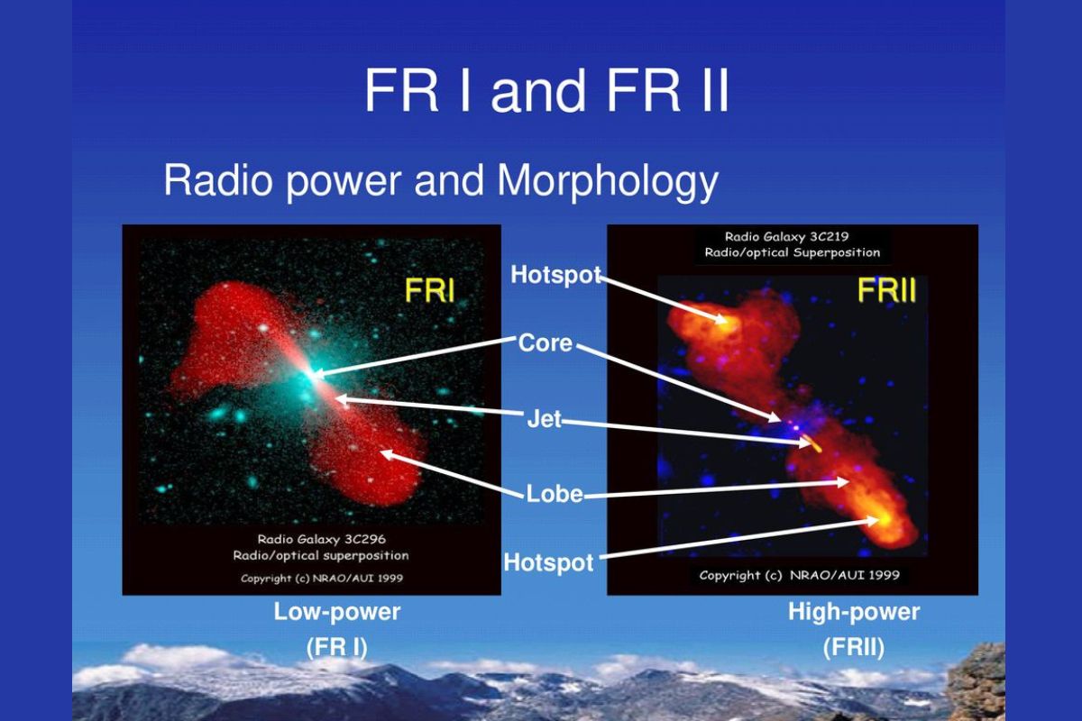 - FR I jets are often wide and diffuse, losing energy as they travel away from the core.