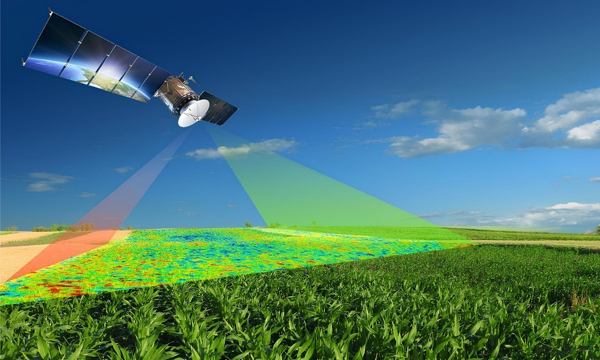 Satellites capture images of fields from space, providing a bird's-eye view of crop health and growth. These images help farmers see patterns and issues that might not be visible from the ground.
