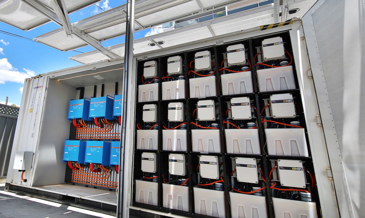 Flow batteries consist of two tanks containing liquid electrolytes, one positive and one negative.