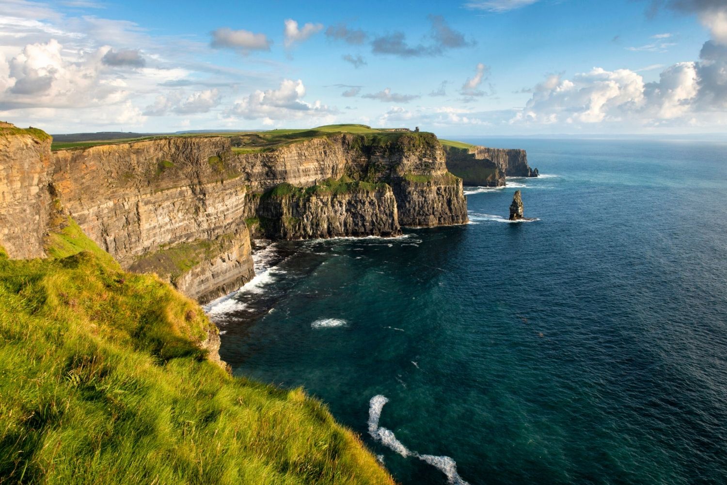 The Cliffs of Moher in Ireland are a popular tourist destination. These cliffs offer stunning views of the Atlantic Ocean.